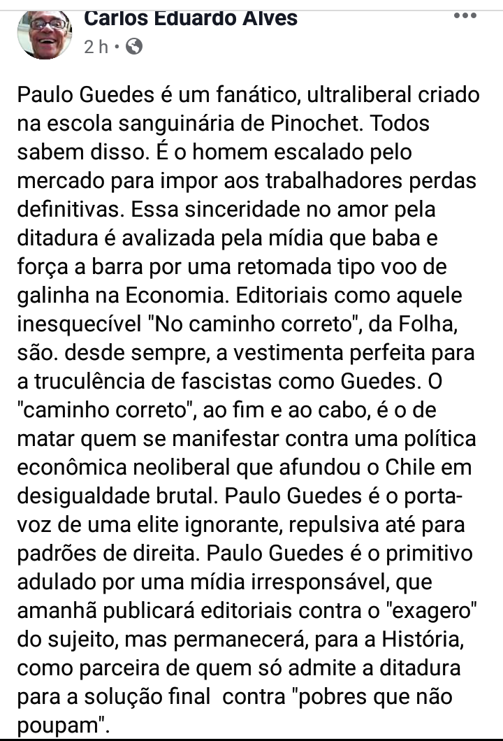 “Guedes é a voz dos fundos de investimento internacionais que mandam no Brasil hoje.