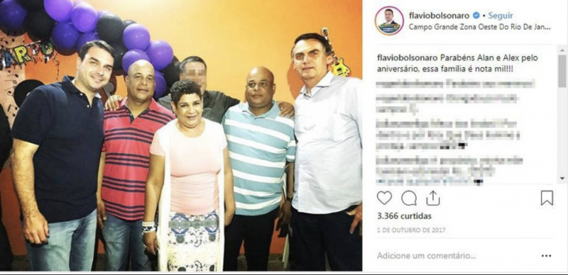 Flávio defendeu-se tratando-os apenas como voluntários sem maiores ligações. Fotos no Twitter desmentiam (ver uma acima), mostrando intimidade ampla dos Bolsonaro – pai e filho – com os irmãos.
