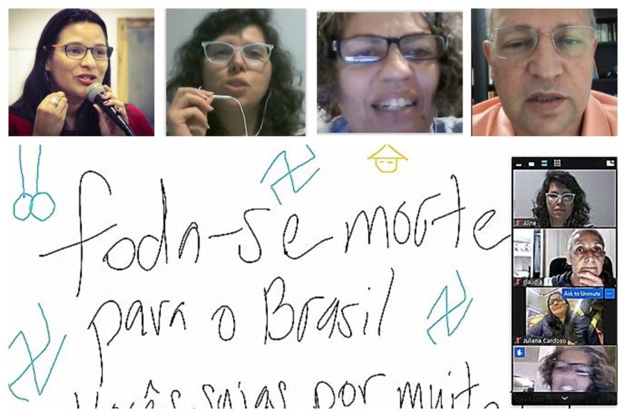 Suástica, palavrões, frases em outros idiomas, vozes masculinas