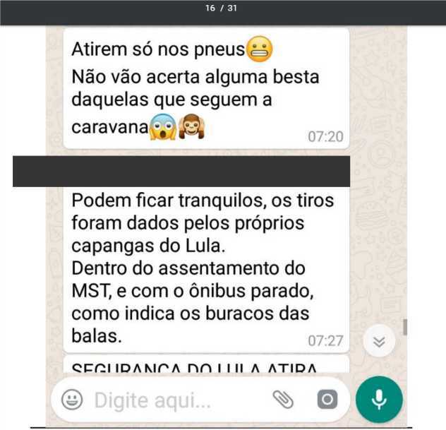 Novos prints adicionados à denúncia revelam a tentativa de acusar a caravana e o MST de promover o atentado