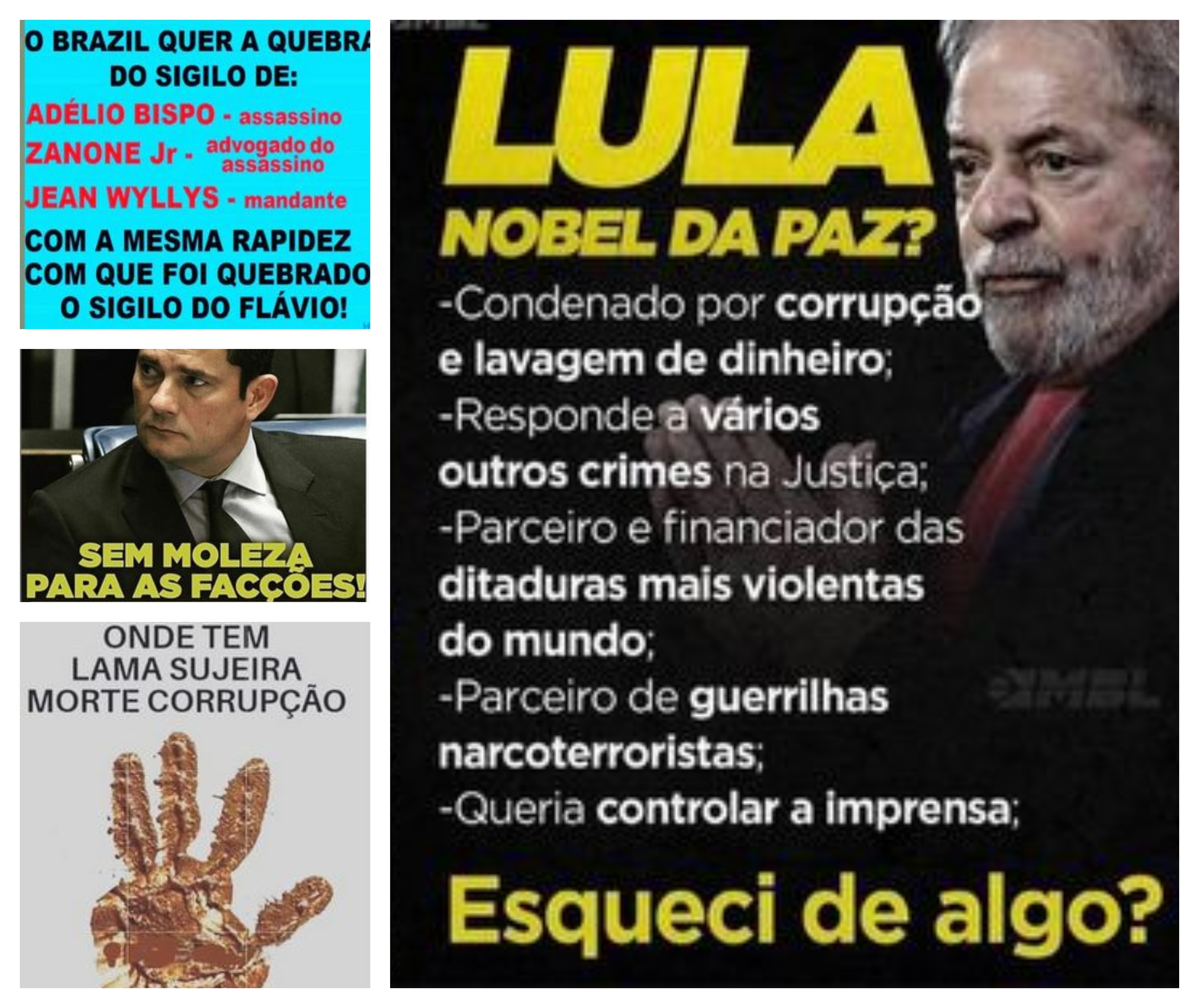 Enquanto ataca Lula, o PT, Jean Wyllys, a esquerda e até a Globo, passa o pano para o agora ministro Sérgio Moro e esposa, Bolsonaro, general Mourão, entre muitos.
