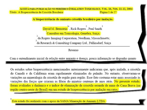 INDÚSTRIA BRASILEIRA DO AMIANTO FINANCIOU BERNSTEIN