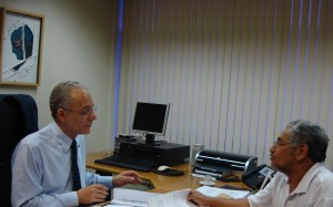 Professor Euclides Castilho, Fernanda Giannasi e Eliezer de Souza: encontro na Faculdade de Medicina da USP para se solidarizar com o ex-presidente da CAPPesq e solicitar seu apoio para apuração das denúncias