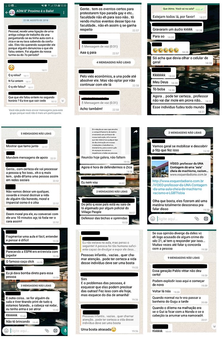 “Como não sou da UNA, procurei informar-me mais sobre o professor, contatei os alunos que fizeram a denúncia”, prossegue.