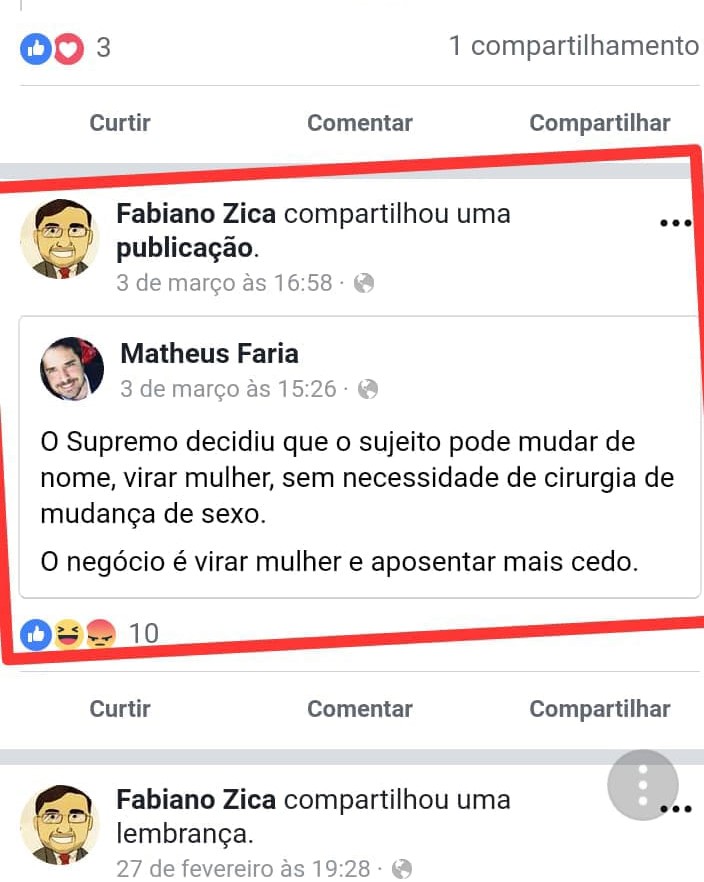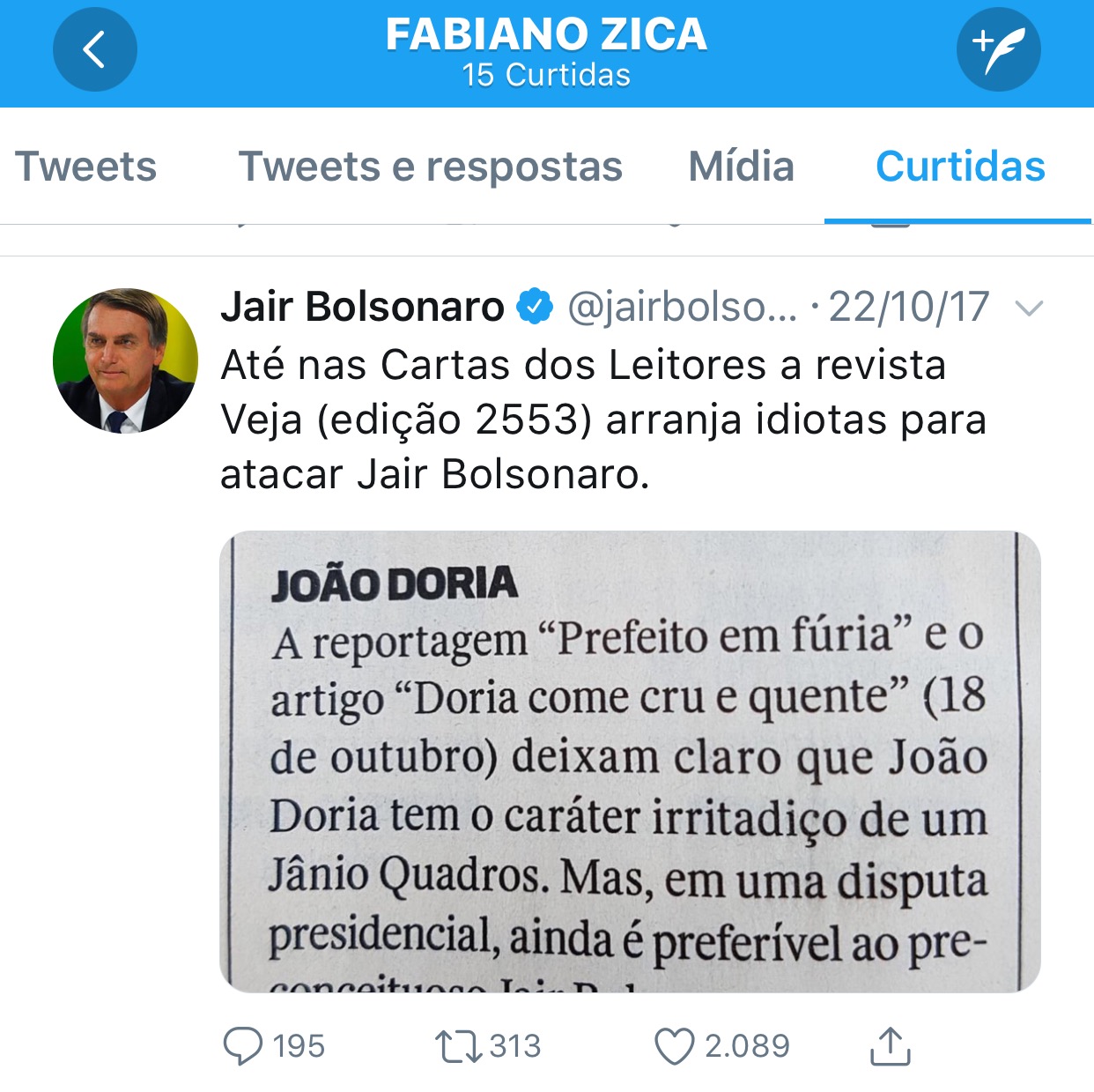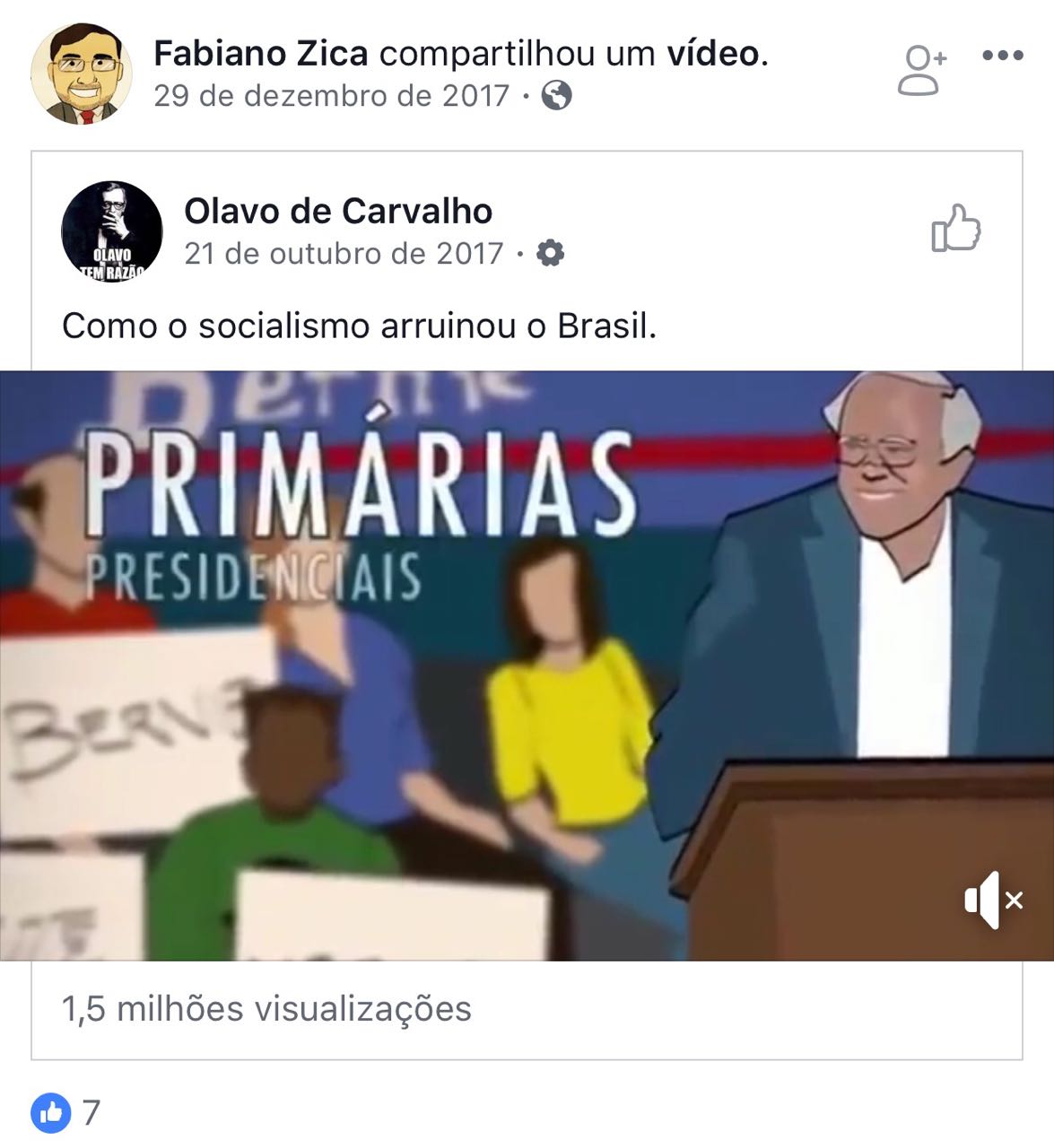 Basta rápida busca em redes sociais para descobrir que o professor Fabiano Zica é amigo virtual e seguidor de conhecidas pessoas de extrema-direita, como o filósofo Olavo de Carvalho, o deputado federal Jair Bolsonaro, candidato à Presidência da República, e o filho dele, o também deputado federal Eduardo Bolsonaro (PSL/RJ).