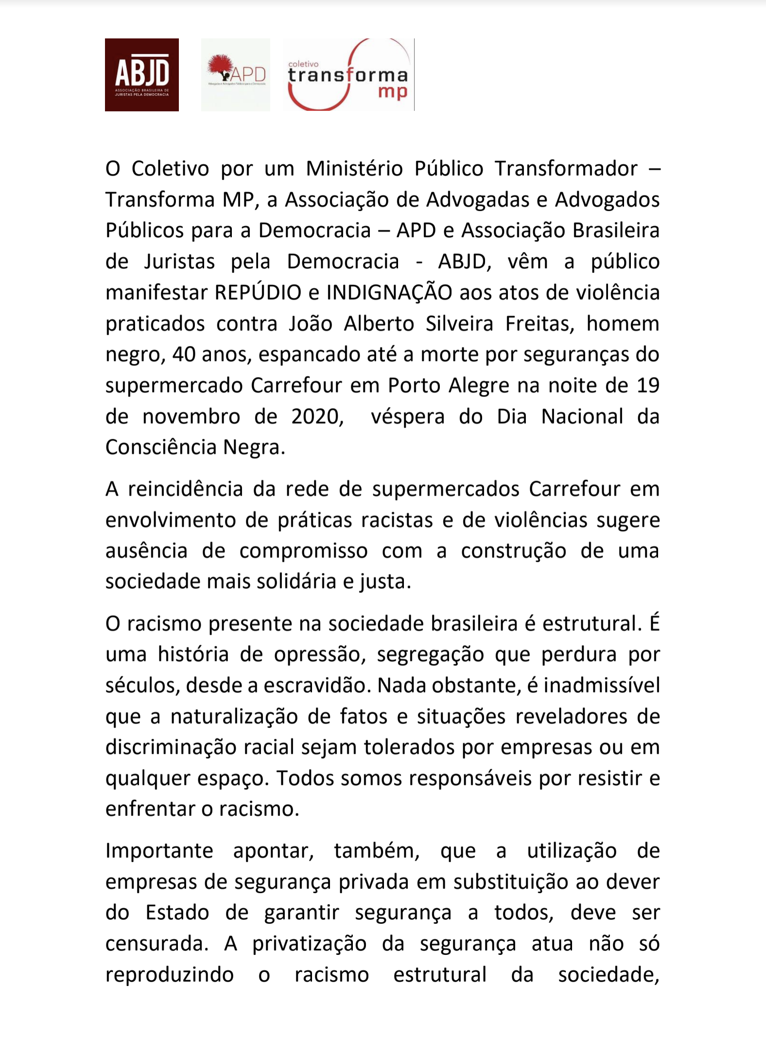 por seguranças de um supermercado de Porto Alegre, com uso de violência