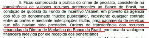 “Ainda assim, não se pode desconhecer que os recursos oriundos do Fundo Visanet, de que agora se trata, eram propriedade do Banco do Brasil”.