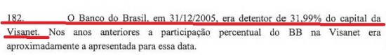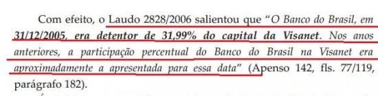 O laudo 2828/2006 não diz que o BB era acionista do Fundo Visanet, mas diz que era detentor de 31,99% do capital da Visanet. Daí talvez a confusão.