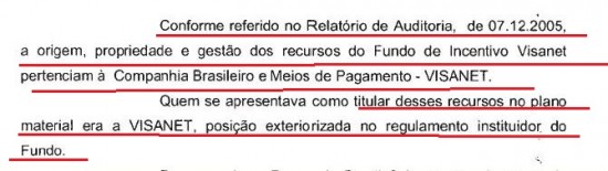 O próprio regulamento, repetimos, tornava isso impossível: A Visanet sempre se manterá como a legítima proprietária do Fundo de Incentivo Visanet.