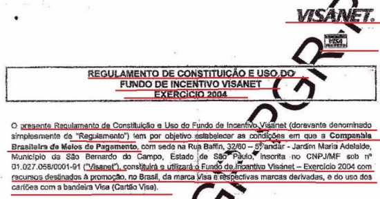 A CBMP/Visanet aprovou então um Regulamento/Contrato, estabelecendo as regras para utilização do dinheiro do fundo. Todas as regras valiam para todos os bancos associados, inclusive para o Banco do Brasil.