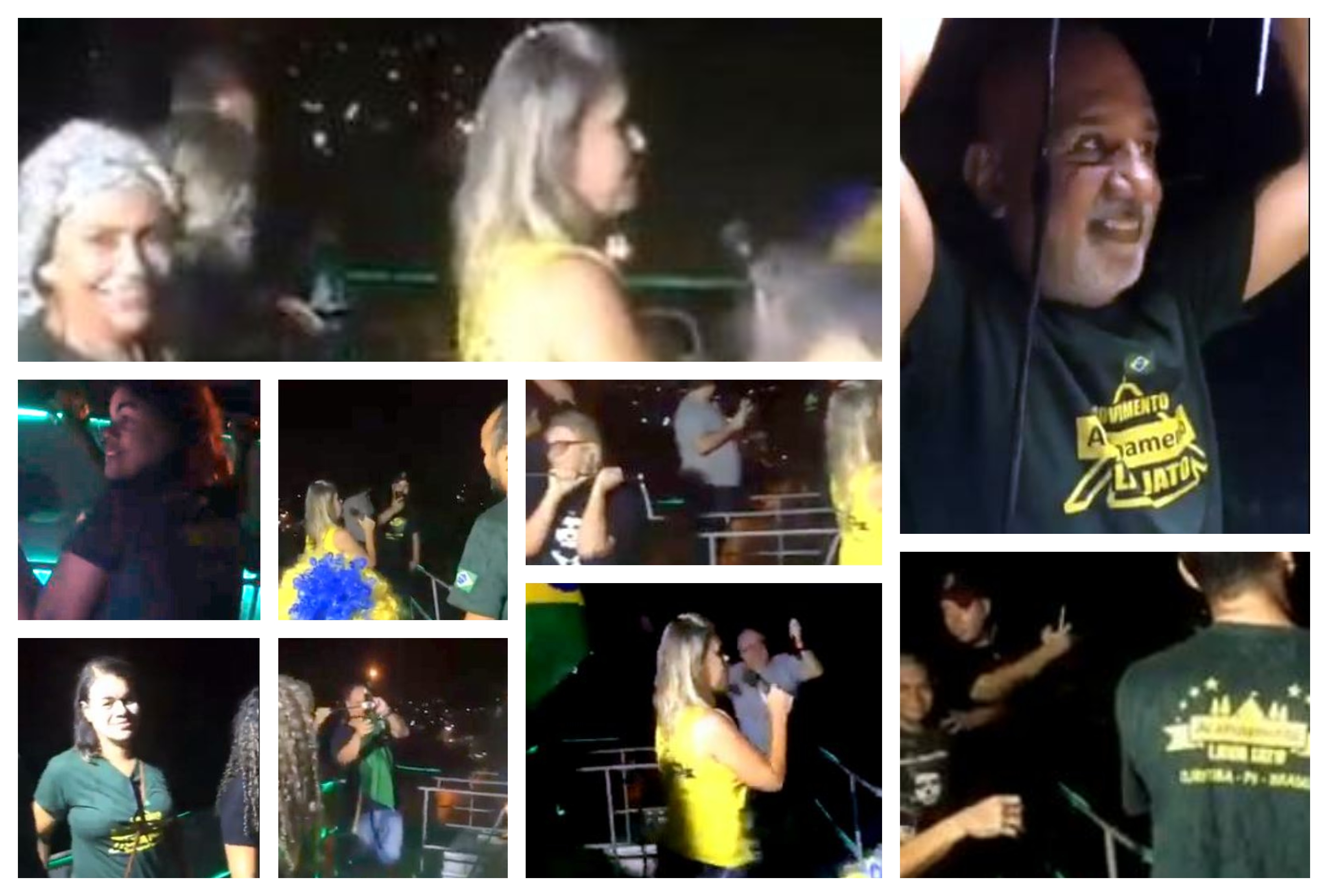 — Só se viu verde e amarelo, que são as cores da nossa bandeira que jamais será..? – ela pergunta, de novo, à plateia do caminhão.