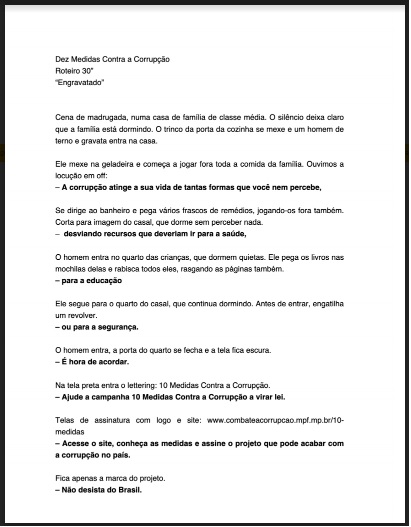 Na tela preta entra o lettering: 10 Medidas Contra a Corrupção.