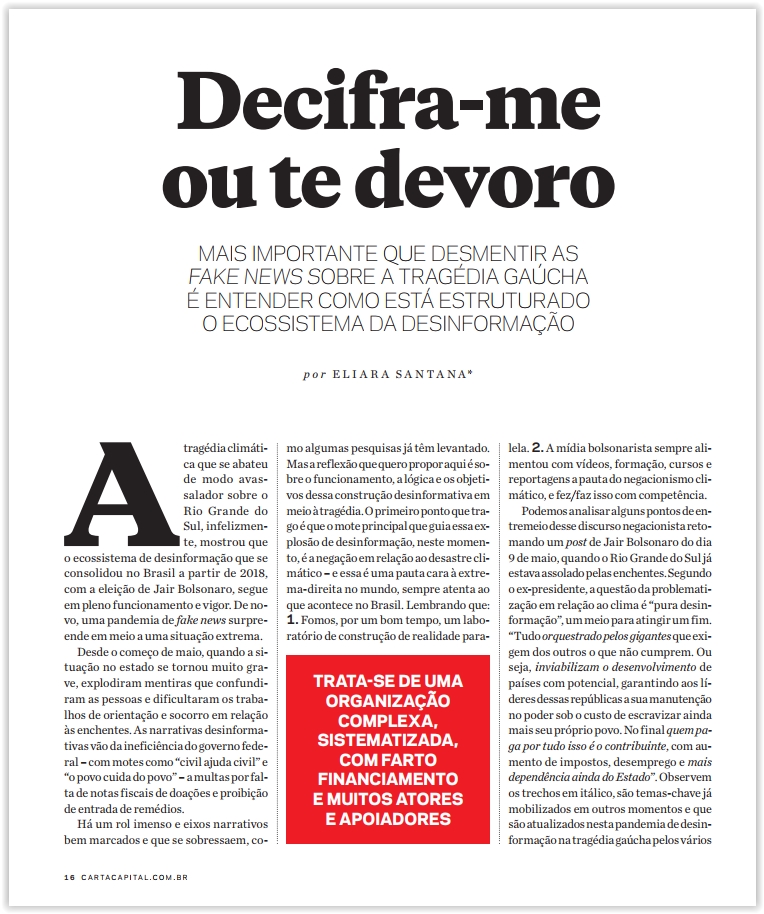 Este artigo de Eliara Santana foi publicado originalmente na revista Carta Capital desta semana.