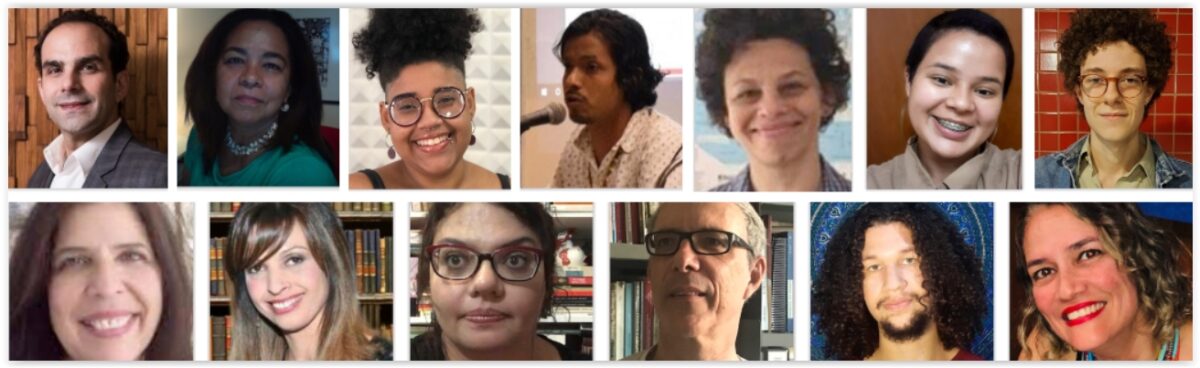 Comissão organizadora. Acima, da esquerda para a direita: Alexandre Le Voci Sayad, Anna Christina Bentes, Bianca Paiva, Cauã Borari, Claudia Wanderley, Ester Borges e Felipe Dornelas; abaixo, da esquerda para a direita: Jackeline Mendes, Lilian Rejane da Costa Minotto, Paula Vermeersch, Ricardo Vieira de Brito, Robson Rodrigues Monteiro e Eliara Santana. Fotos: arquivos pessoais