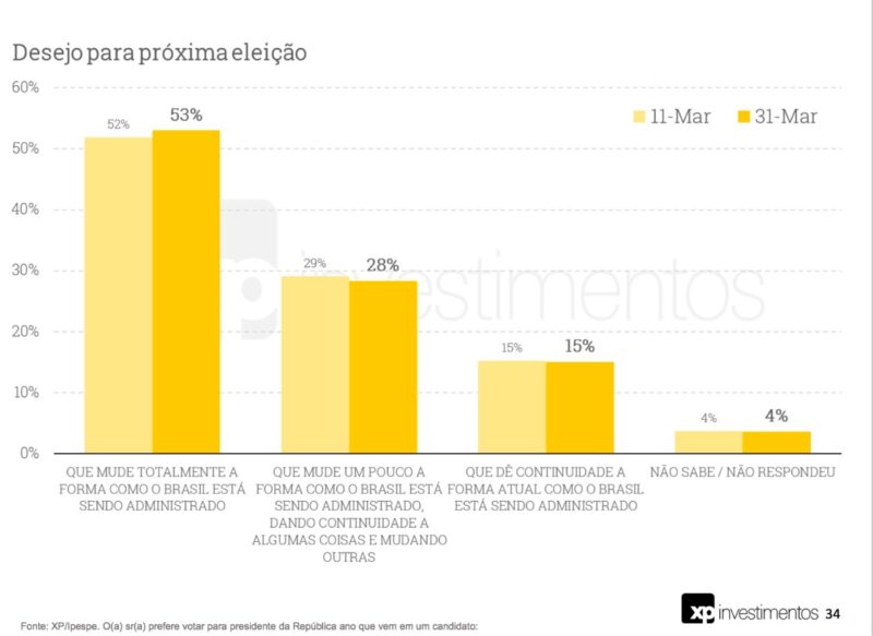 Pesquisa XP foi realizada nos dias 29, 30 e 31 de março