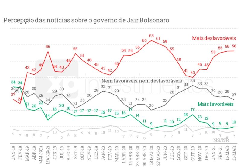 Isso confirma a continuidade na trajetória de alta da rejeição ao governo de Jair Bolsonaro. Essa tendência, segundo a pesquisa, se iniciou em outubro: a avaliação negativa era de 31% naquele momento e saltou para os 48% de agora.