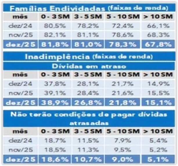 Pesquisa de Endividamento das Famílias – dezembro 2025