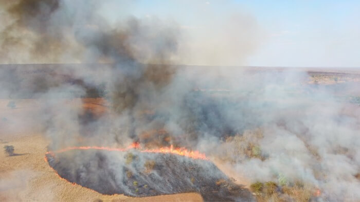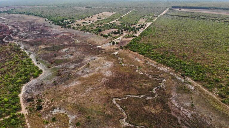 Florestas queimadas na Fazenda Parceiro, de propriedade do produtor agrícola brasileiro SLC Agrícola, e localizada no ‘município mais desmatado’ do Cerrado, outubro de 2020. Foto: ITV/TBIJ