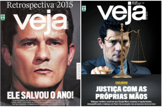 Em 2015, o juiz Sérgio Moro mereceu o apoio da revista Veja, em sua retrospectiva: “Ele salvou o ano!”.