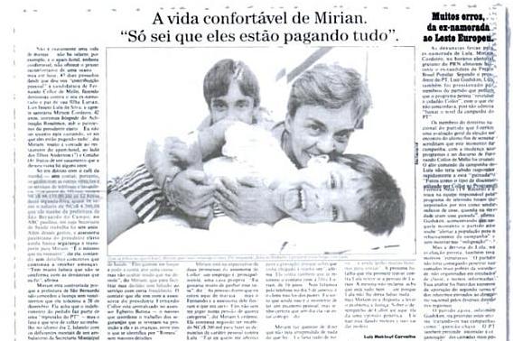 A notícia de que Lula tinha uma filha com Miriam Cordeiro foi dada, primeiro, pelo Jornal do Brasil. Depois, ela apareceu no horário eleitoral gratuito da coligação de Collor. No dia seguinte, foi parar no Jornal Nacional.