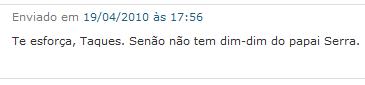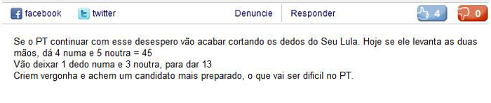 Se você quer denunciar um comentário inadequado, vote negativamente no botão que aparece ao lado dele ou mande um e-mail para o site citando o post e a identificação do autor.