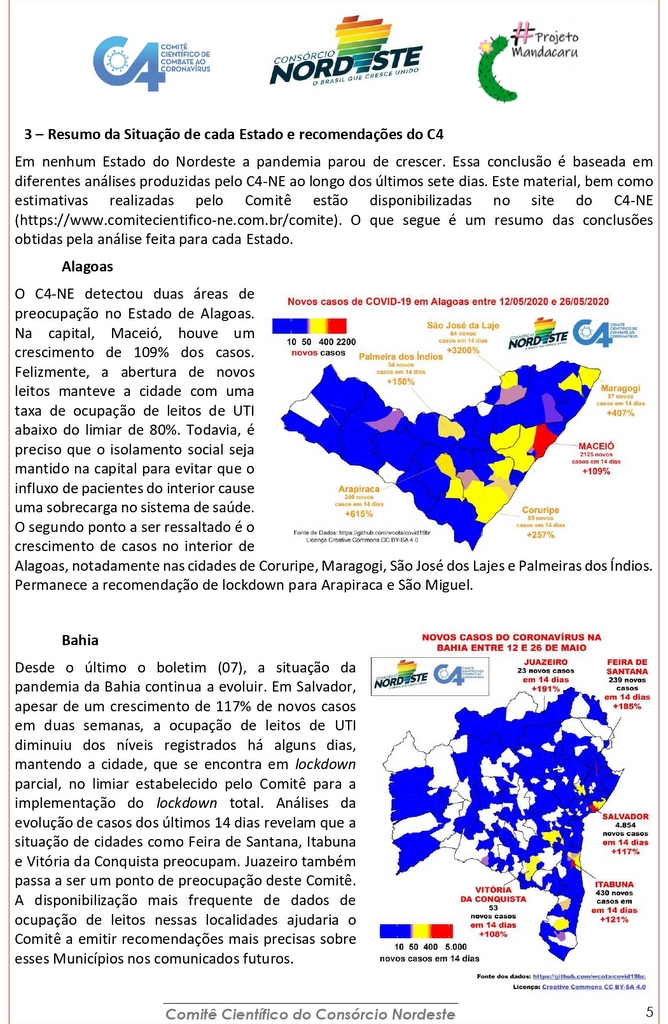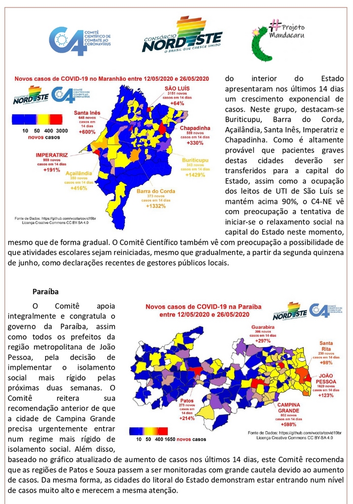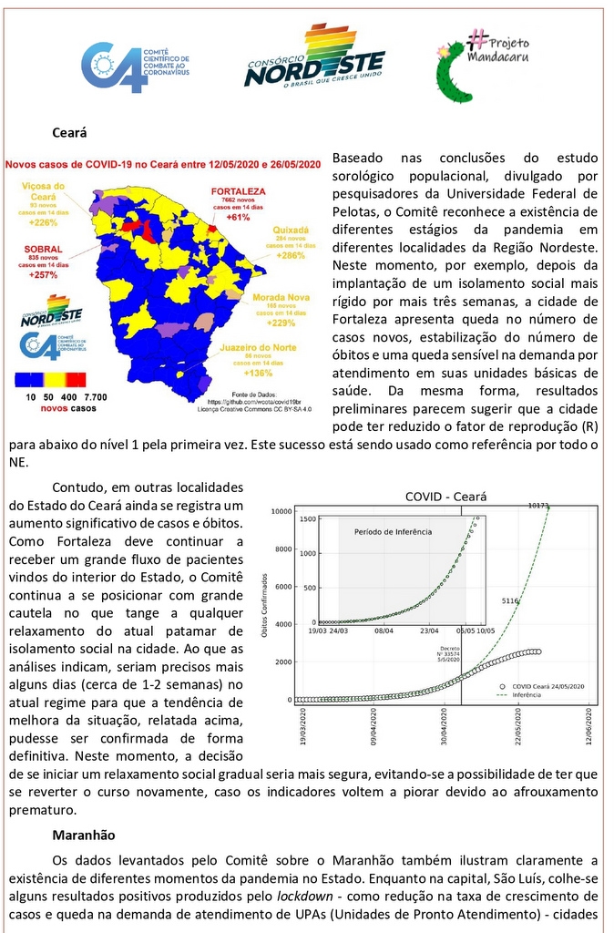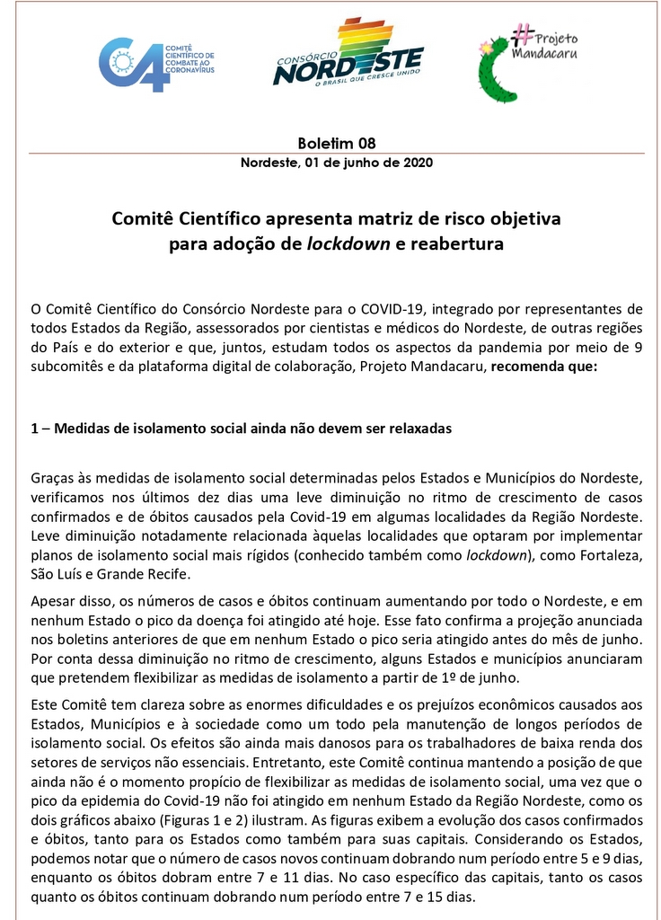 Saiu na noite dessa segunda-feira, 01/06, o Boletim número 8 do Comitê Científico para a Covid-19 do Consórcio do Nordeste.
