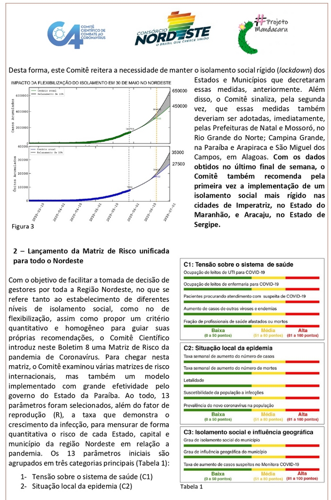 Pois para facilitar a tomada de decisão dos governadores e prefeitos de toda Região Nordeste, o Comitê Científico criou uma ferramenta inovadora — a matriz de risco da pandemia de coronavírus -, que apresenta no Boletim 8.