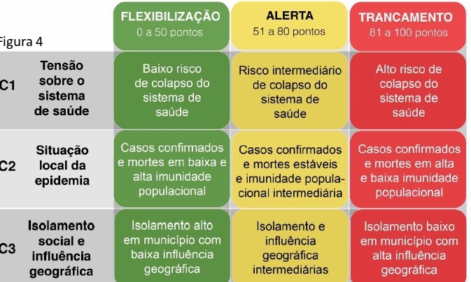 flexibilização (verde), alerta (amarelo), e trancamento (vermelho).