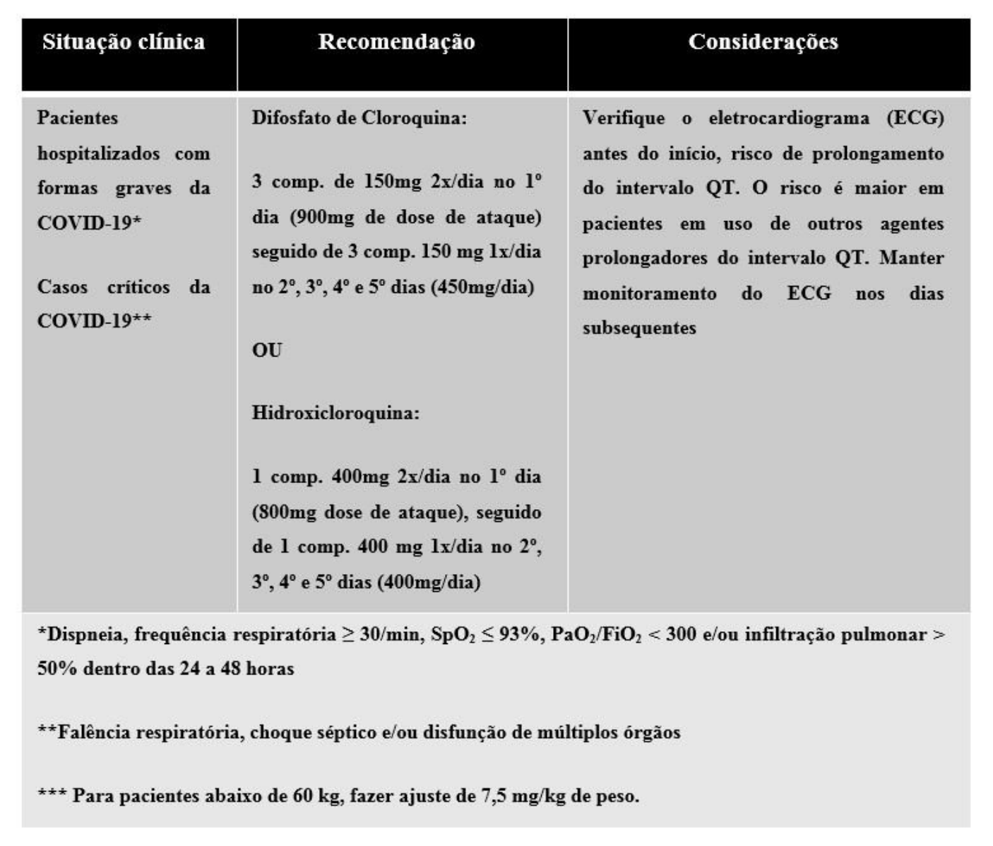 (2) é a mesma dose, por peso dos pacientes, usada na China, e que consta atualmente no Consenso Chinês de tratamento de COVID-19;