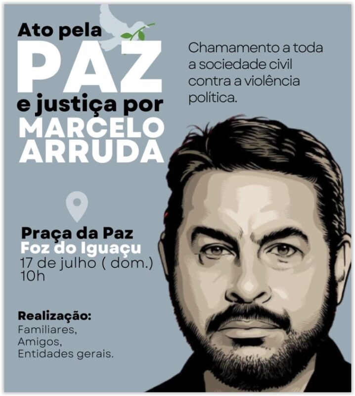 Familiares, amigos e entidades realizam neste domingo, 17/07, em Foz do Iguaçu (PR), Ato pela paz e justiça por Marcelo Arruda.