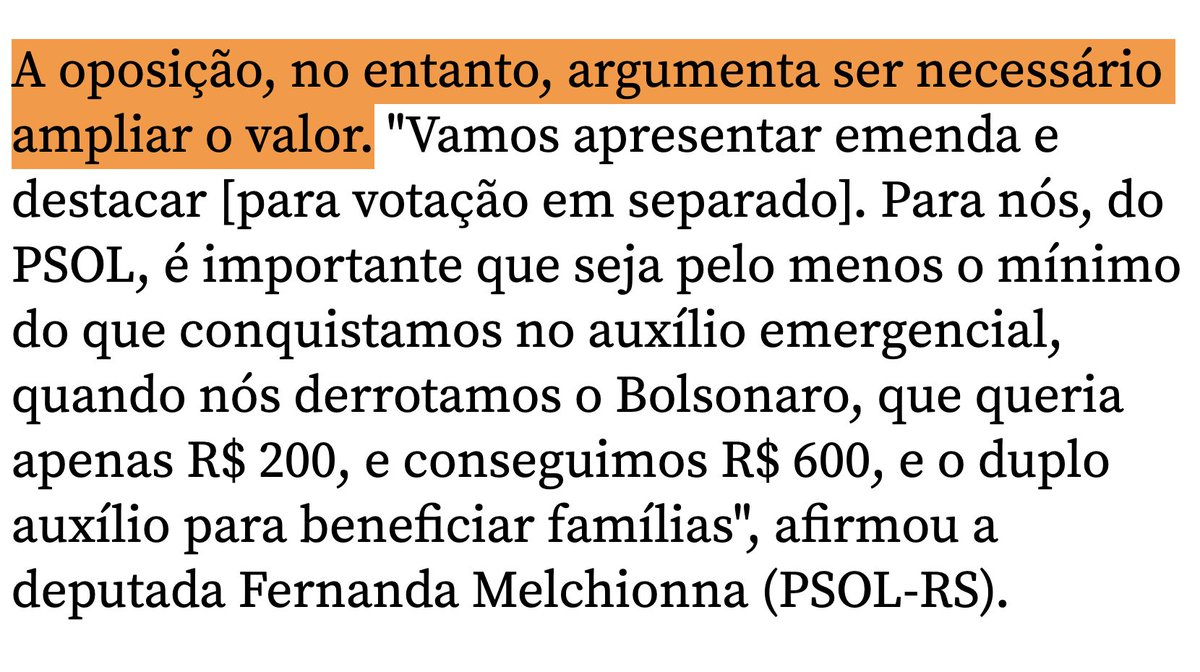 A Oposição propõe Aumento do Auxílio.
