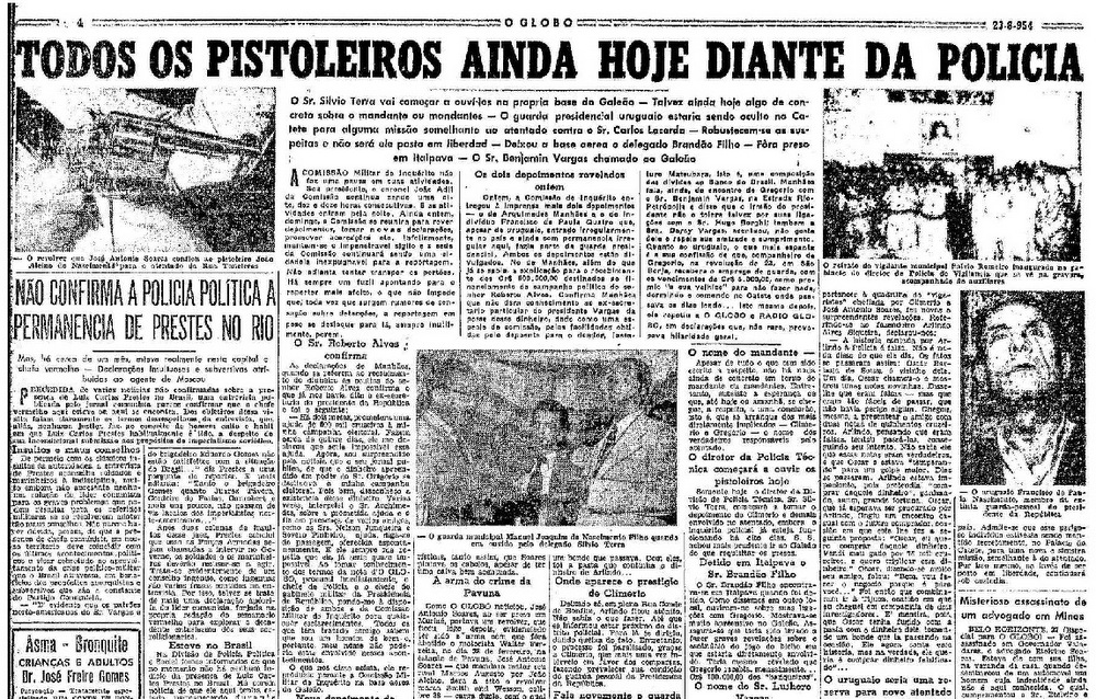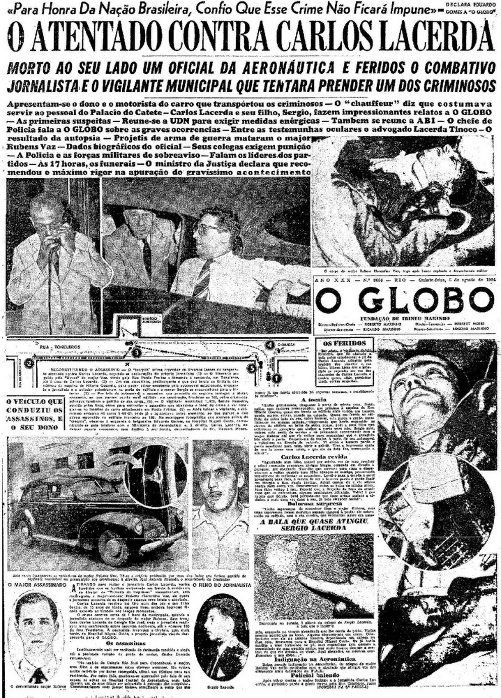Edição extra de O Globo que saiu no dia do atentado, 5 de agosto, já dizia que o taxista envolvido no crime servia habitualmente ao Palácio do Catete.