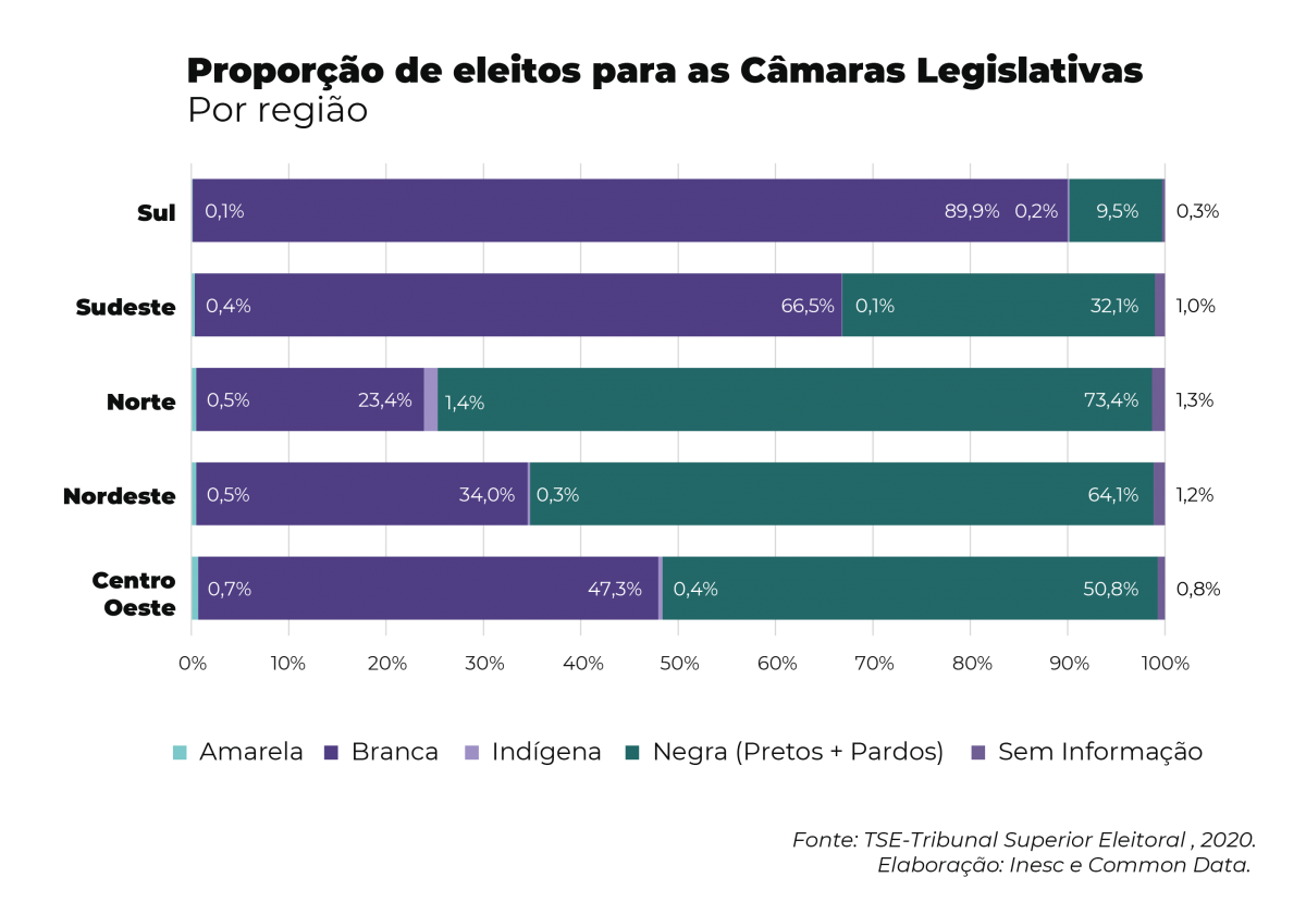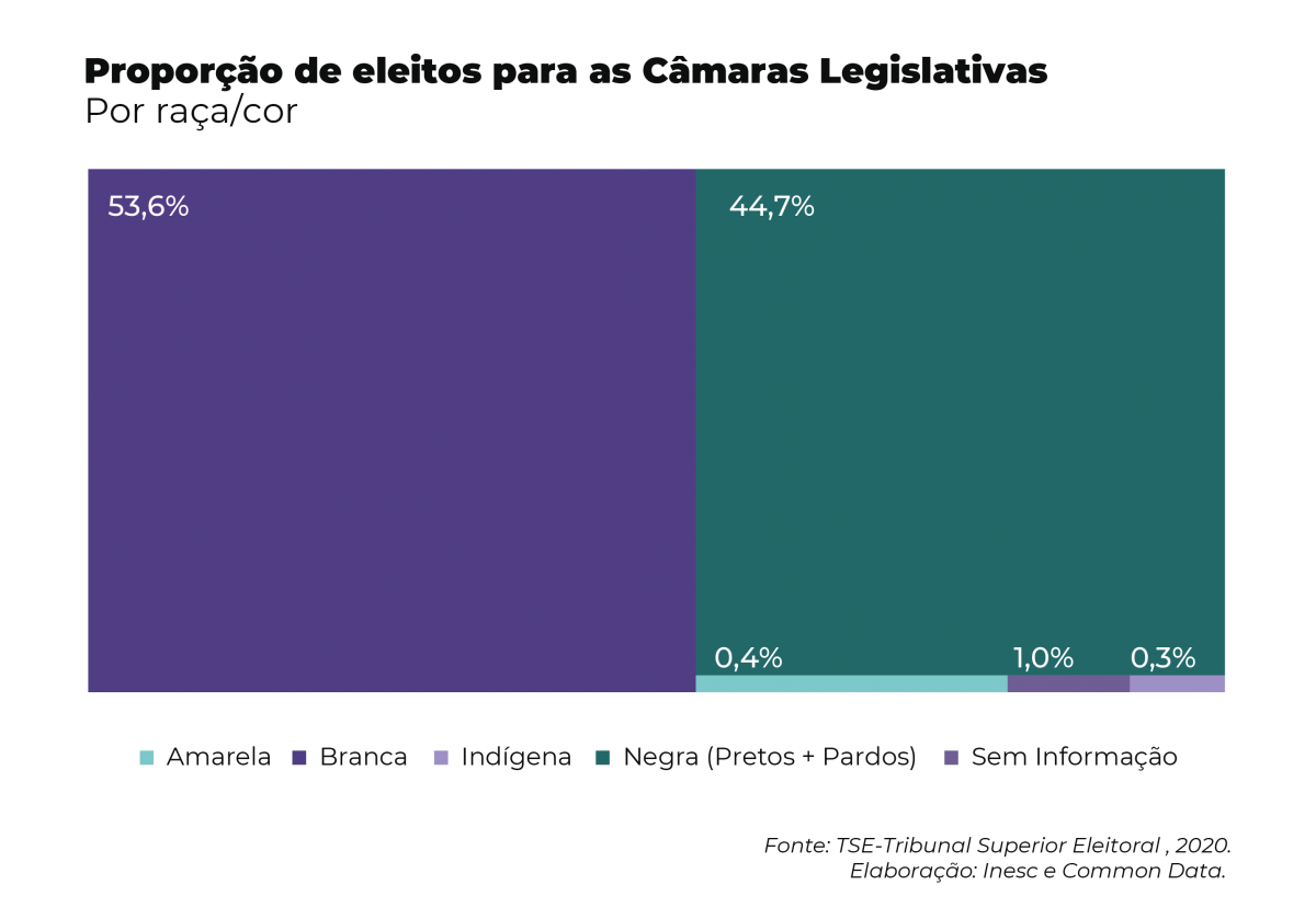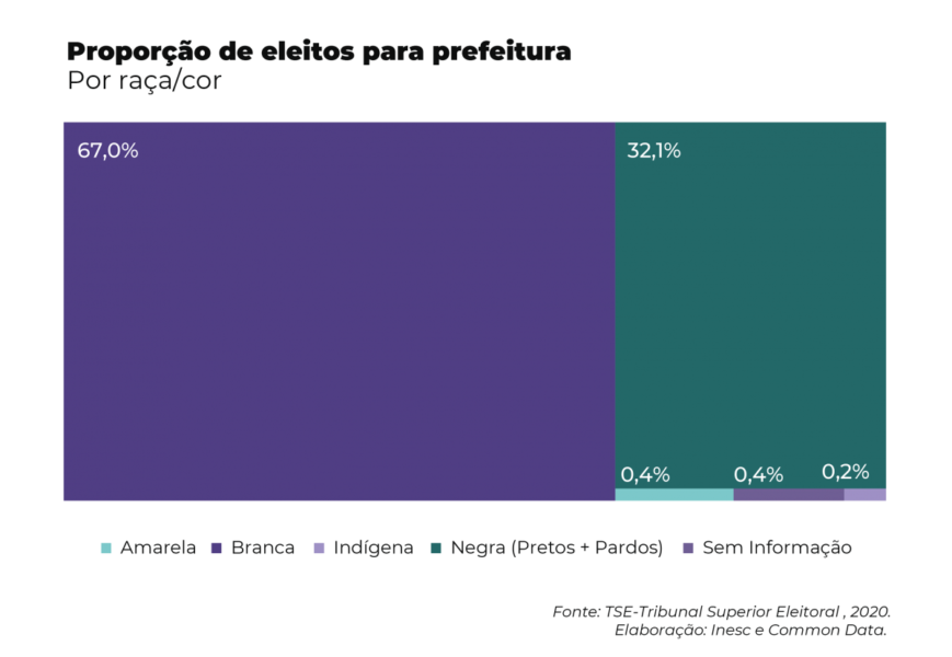 Das mais de 88 mil mulheres negras candidatas, 4,54% (4.026) foram eleitas (3.510 pardas e 516 pretas). Das 706 mulheres indígenas que se candidataram, 31 foram eleitas.