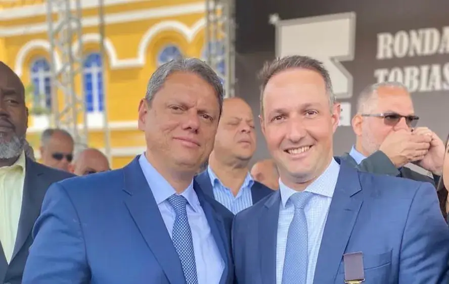 Tarcísio de Freitas ao lado de Guilherme Derrite. Foto: Reprodução