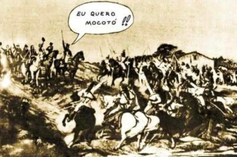 Em novembro de 1970, Jaguar pegou uma cópia de Independência ou morte, o quadrão de Pedro Américo, e tascou um balão de fala em Pedro I com a frase “Eu quero mocotó!!”, refrão da música de Jorge Ben que sacudiu naquele ano o V Festival Internacional da Canção Popular na performance escrachada de Erlon Chaves e sua Banda Veneno.