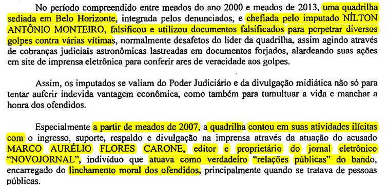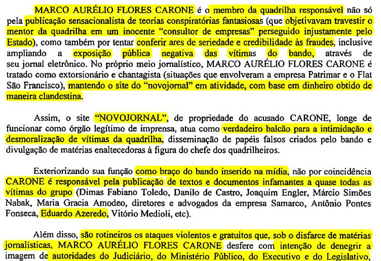 “O promotor André Pinho disse que eu era ‘relações públicas’ da organização criminosa e utilizava o NovoJorrnal para defender o Nilton Monteiro e pressionar as vítimas. O que foi desmentido por todos”, afirma Carone.