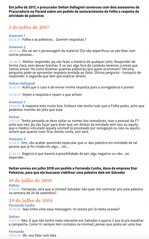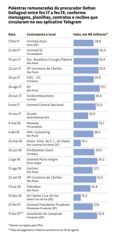 A partir de 2017, Deltan embolsou ao menos R$ 580 mil em palestras.