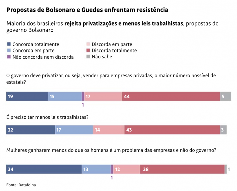 Em pesquisa publicada no diário conservador paulistano, 60% se disseram contra as privatizações e 57% rejeitam a perda de direitos trabalhistas.