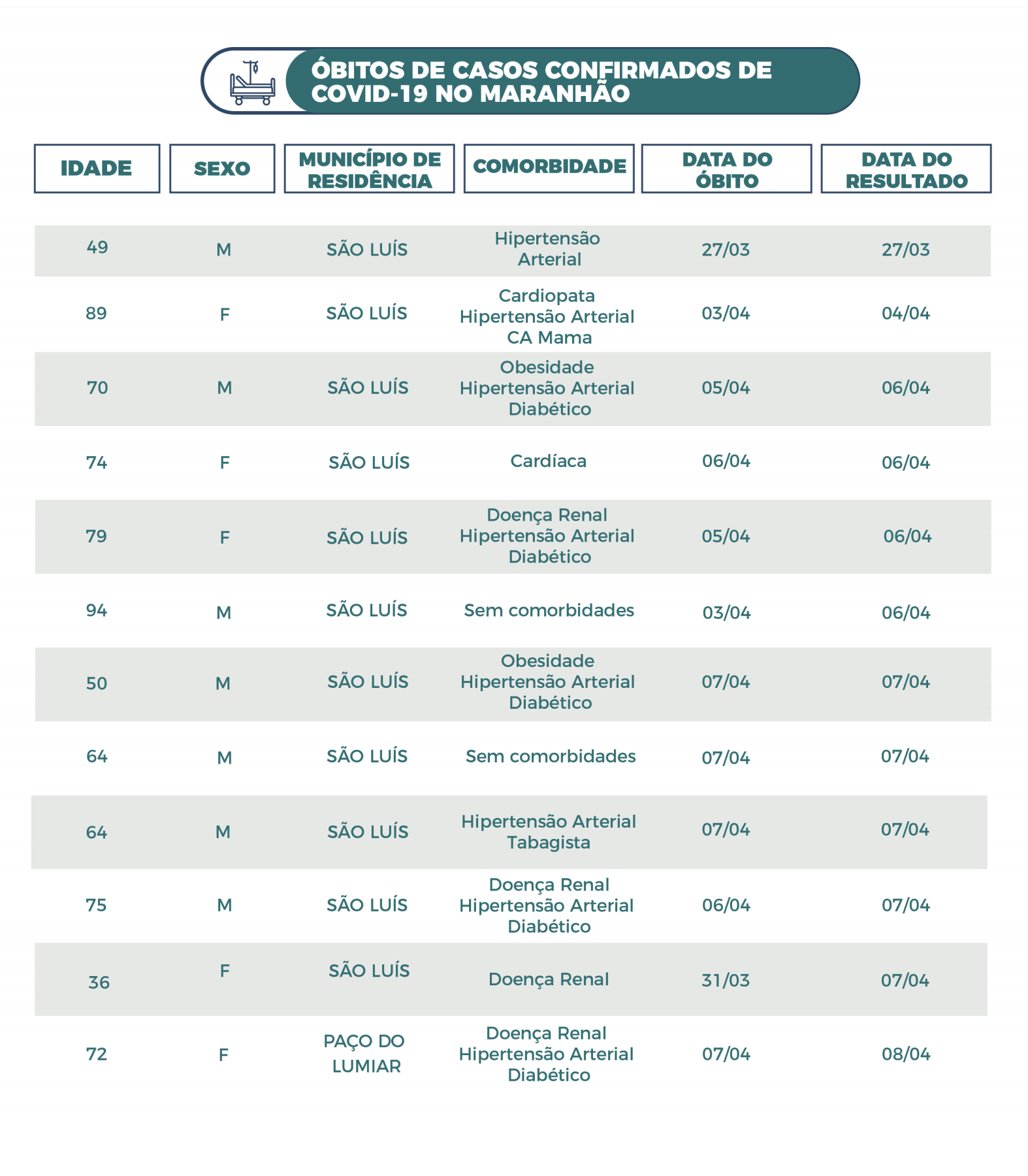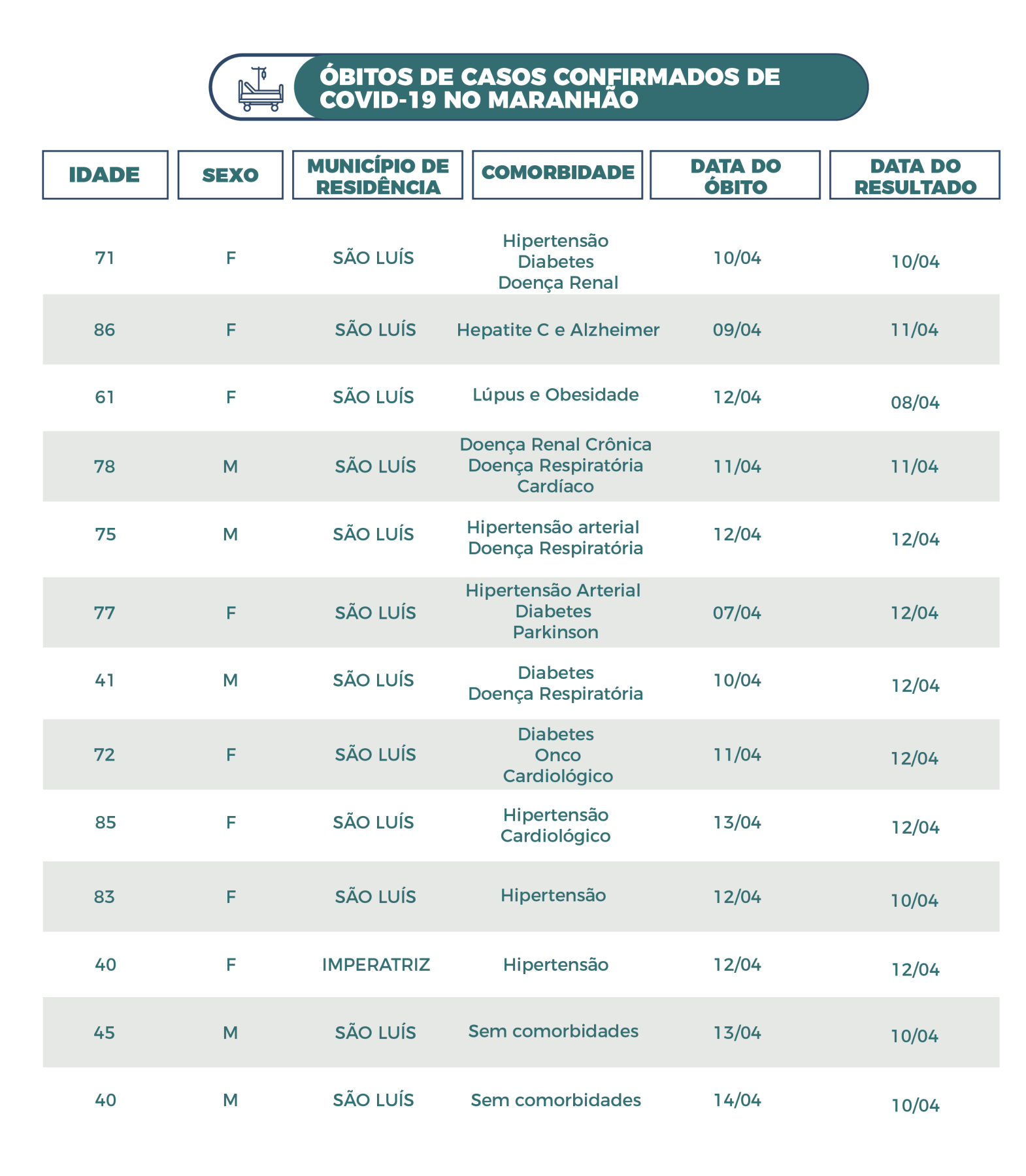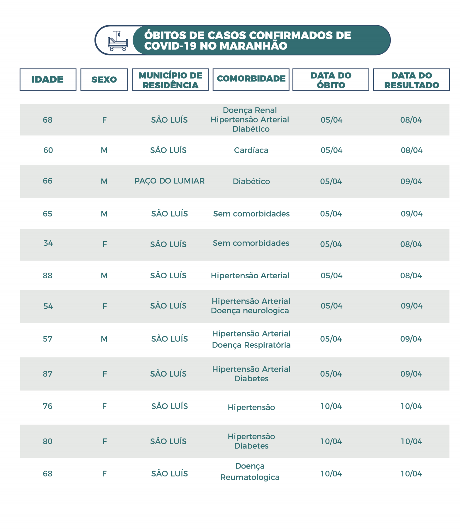Porém, o risco ficou evidente na contaminação de vários assessores do secretário Carlos Lula e na morte da auxiliar de enfermagem Maria Madalena Barbosa Souza, que trabalhava numa UPA de São Luís — ela tinha 61 anos de idade.