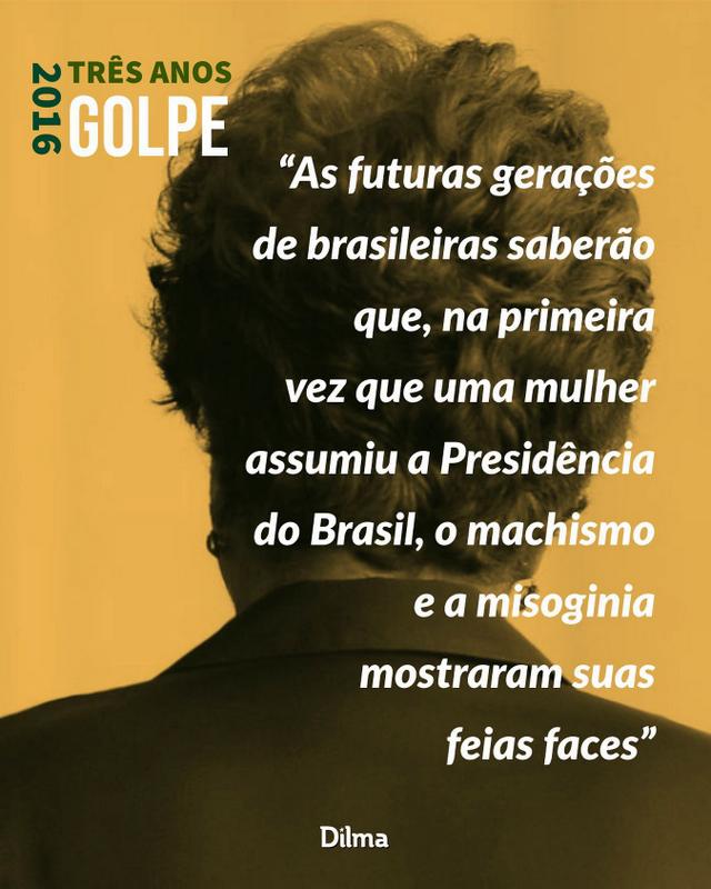As futuras gerações de brasileiras saberão que, na primeira vez que uma mulher assumiu a Presidência do Brasil, o machismo e a misoginia mostraram suas feias faces. Abrimos um caminho de mão única em direção à igualdade de gênero. Nada nos fará recuar.