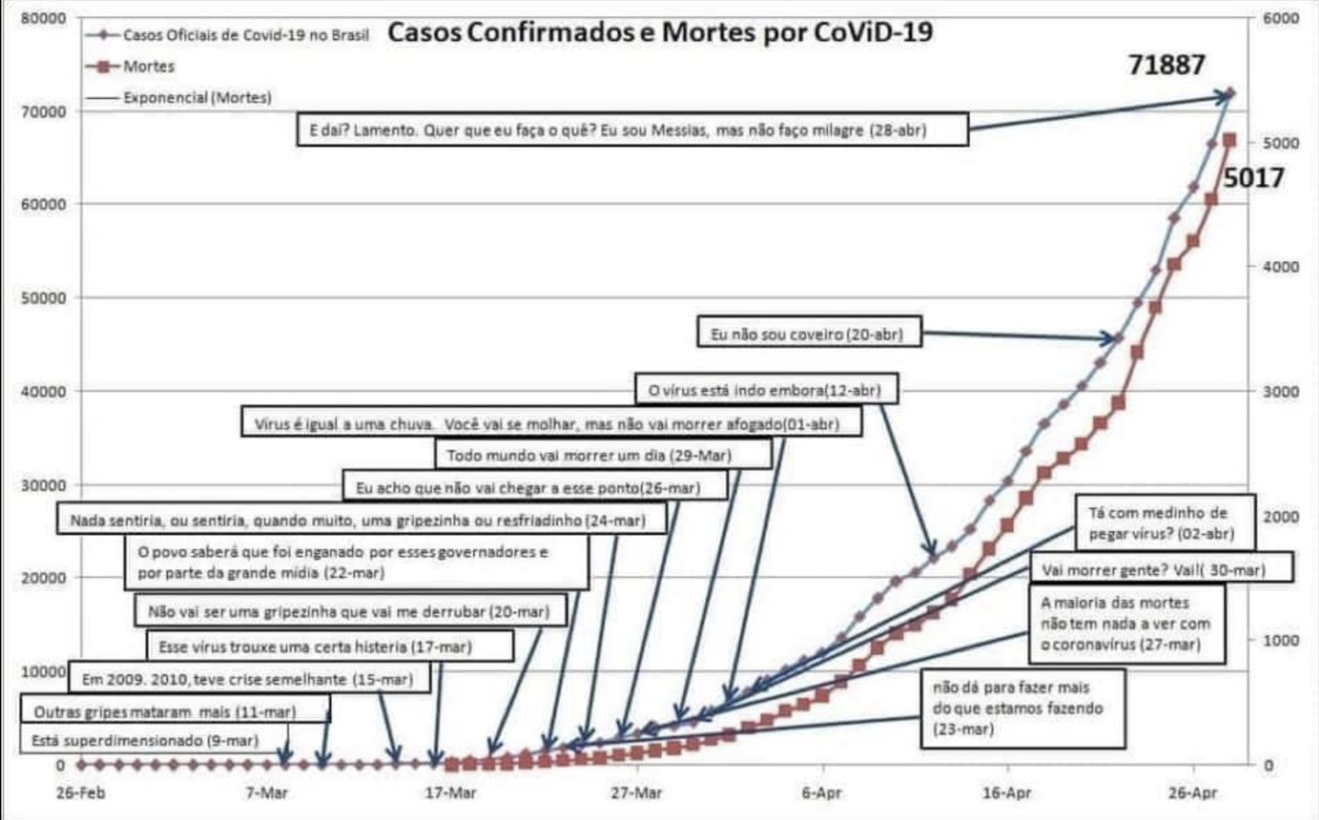Entrou na fase da negação dos óbitos, duvidando dos números divulgados em São Paulo.