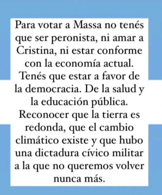 “Precisamos acabar com o discurso de ódio e a violência política. O peronismo faz política respeitando as instituições, a Constituição, as leis e as urnas”, pontuou. “E é assim que devemos encarar as eleições do próximo domingo, para que Sérgio Massa seja eleito presidente”.