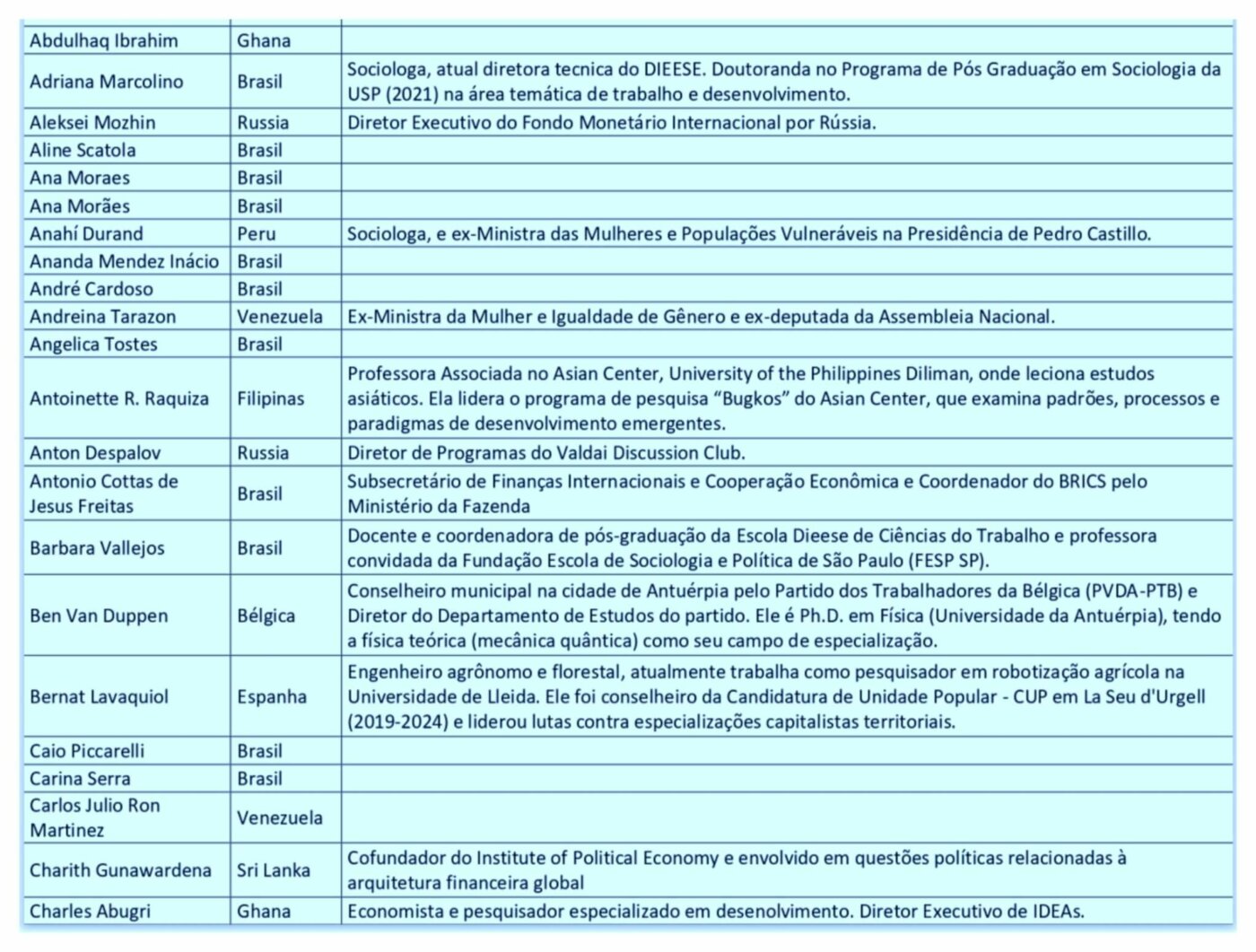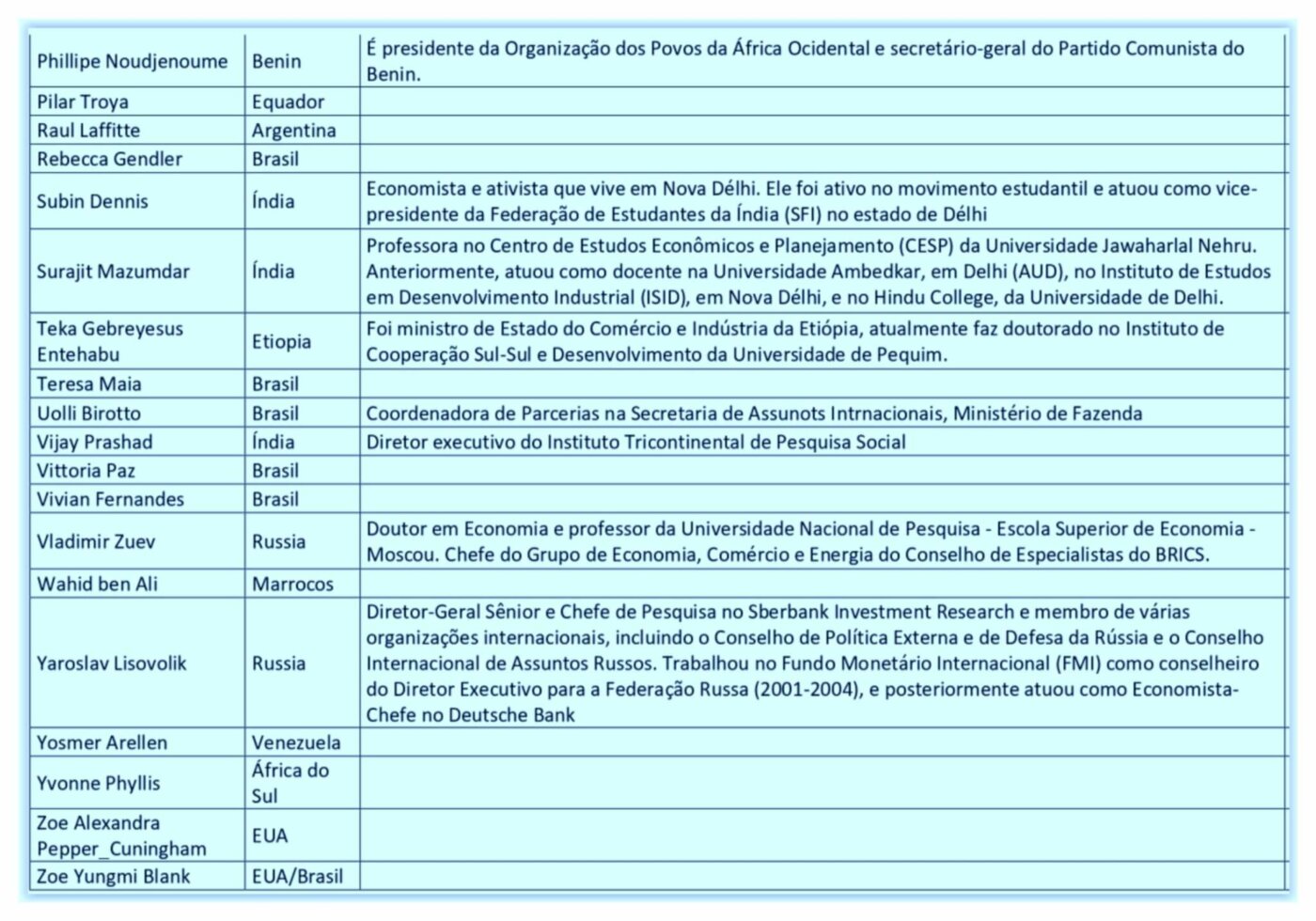 - Yaroslav Lissovolik, assessor da Rússia no FMI e fundador do Brics+ Analytics),