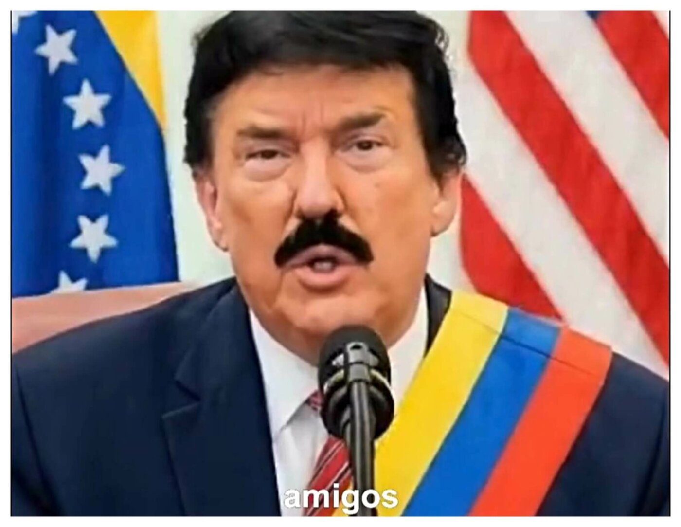Mas nada se compara ao vídeo gerado por Inteligência artificial no dia 05 de janeiro de em que Donald Trump aparece de bigode e cabelo no estilo Maduro se autoproclamando o novo presidente da Venezuela, falando em inglês e espanhol e invocando “sexy mamacitas, mariachis e drinks de margaritas”.