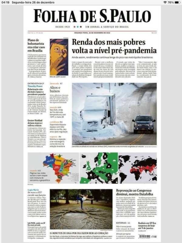 As capas dos jornais são simplesmente vergonhosas. pic.twitter.com/Rwm6A6c18F— jeferson miola (@jefmiola) December 26, 2022