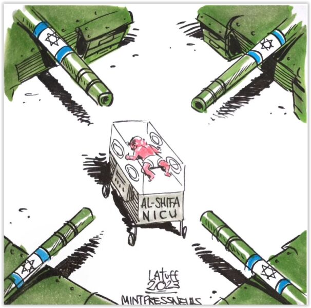 Por este raciocínio, seriam aceitáveis, por exemplo, bombardeios de hospitais, mesquitas, escolas, e o assassinato de uma criança a cada 11 minutos e de uma mulher palestina a cada 17 minutos até a “solução final” de aniquilamento dos “animais selvagens”, os palestinos.