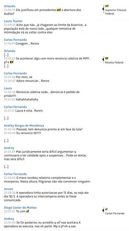 principalmente diálogos entre Procuradores do MPF, da FTLJ*,