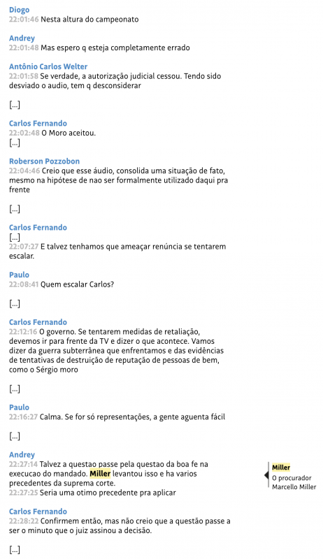 Não se iluda não. Preso, infelizmente eles não vão ser de jeito nenhum. Eles ainda têm muita força política, e a rede que os protege é muito forte, sobretudo o ex-juiz Sérgio Moro. Basta pensar que diante desse vendaval todo de denúncias, que já duram três meses, até agora, nenhum deles foi punido, então imaginar que eles serão presos é pura ilusão.
