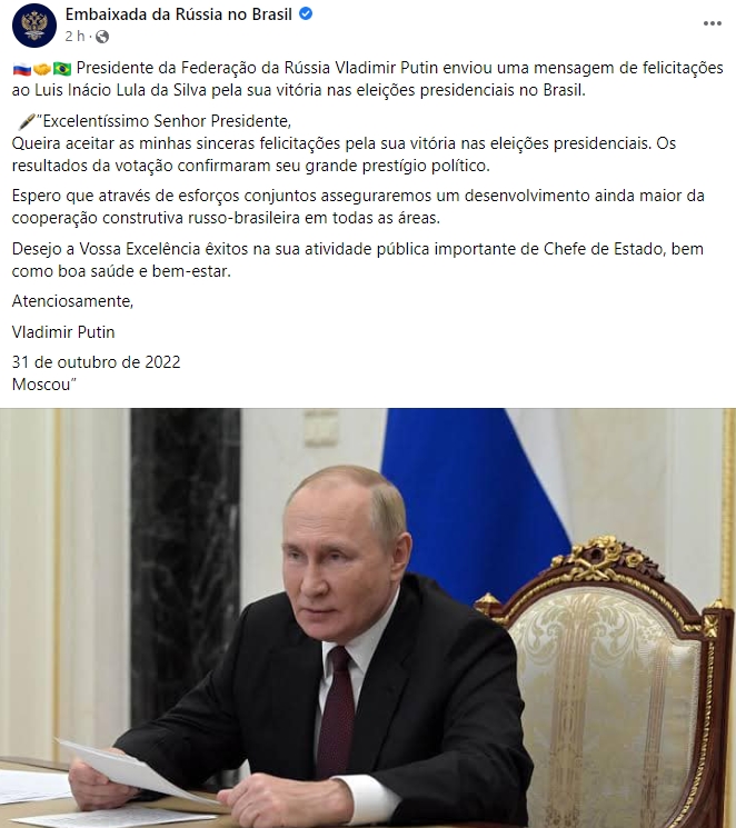 Até a Celebridade Internacional da Ucrânia parabenizou LULA.