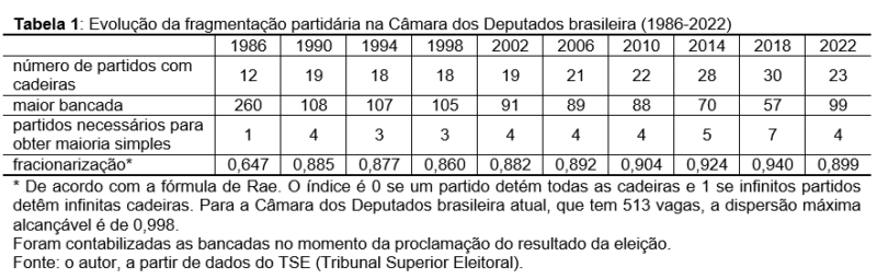 A eleição de 2022 revelou um quadro ainda de enorme fragmentação, mas de volta aos níveis de meados da década de 2000, como mostra a tabela 1.